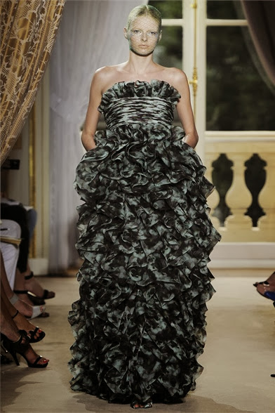 Parlo di pennellate perchè, guardando in sequenza gli abiti, sembra che Giambattista Valli abbia lavorato alla collezione un'artista lavora ad una composizione, ha lavorato per ricreare un'insieme armonico, cui si arriva sperimentando e stratificando segni e colori, proprio come fanno i pittori.